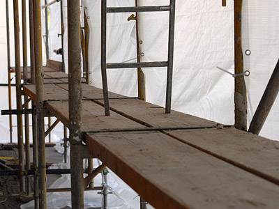 Um die Fassade des Gebäudes zu erneuern, ließ der Hauseigentümer ein Gerüst aufstellen. Dabei beachteten die Arbeiter jedoch nicht die Beschaffenheit des Untergrundes.